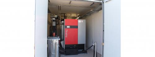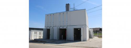 Besonderheit: Die gesamte Anlage wurde in Containerbauweise errichtet, nach Anschluss an das Fernwärmeverbundnetz werden Anlagenkomponenten zurückgebaut