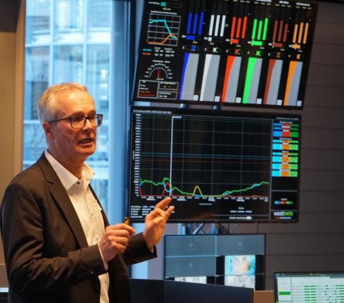 In permanentem Austausch mit Daten, Sensoren und AlgorithmenSteuern und eingreifen. Das lenkt den Blick zurück in die Arnsberger Netzleitstelle, in das Gehirn des schier unendlichen Leitungswirrwarrs. Sie erinnert mit ihren vielen Bildschirmen, blinkenden Balken, bunten Linien und Diagrammen entfernt an die Kommandozentrale des Raumschiffs Enterprise. Für gewöhnlich herrscht hier kein Publikumsverkehr, kritische Infrastruktur ist grundsätzlich zu schützen, nicht nur vor Hackern.