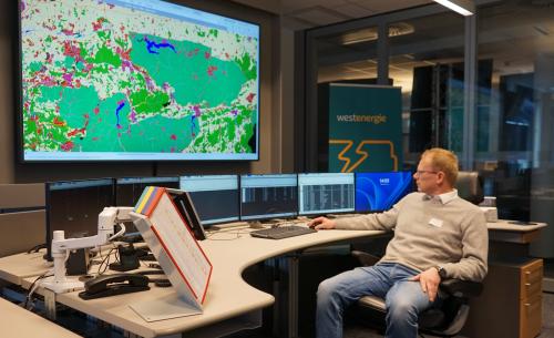 Einer aus dem Team, das hier regelmäßig Zutritt hat, in Schichten rund um die Uhr den Überblick behält und auf Störungen im Netz reagiert, ist nicht Lieutenant Uhura, sondern Kilian Henke. Der Systemführer Schaltleitung bewegt sich an Maus und Tastatur traumwandlerisch sicher durch die Sensoren, die aus den Ortsnetzstationen permanent Daten senden, durch die ständig aktualisierten Wetterprognosen, aus denen Algorithmen Einspeisemengen für bis zu vier Stunden im Voraus berechnen, und durch die Daten, die übergeordnete Spannungsnetze etwa des Übertragungsnetzbetreibers Amprion liefern.