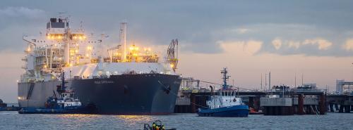 LNG-Tanker „Ish“ an der Floating Storage and Regasifation Unit Höegh-Gannet in Brunsbüttel Quelle: RWE |