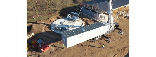 Anlieferung der Container für das BHKW des Alfhausener Fernwärmenetzes Quelle: Rasche & Weßler GmbH |