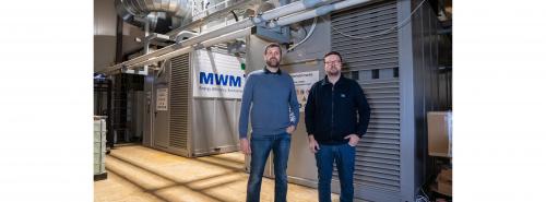 Flexible Fahrweise der KWK-MotorenDie Wärme, die die beiden Gasaggregate erzeugen, wird per Fernwärmenetz an die Haushalte der 4.000-Einwohner-Gemeinde geliefert. Neben dem neuen BHKW wurde ein Warmwasserspeicher mit nahezu 2.500 Kubikmeter Volumen installiert. Bei plötzlichen Kälteeinbrüchen oder einem BHKW-Ausfall dient der Speicher zusätzlich als Puffer, der den Ort im Winter bis zu vier Tage und im Sommer bis zu 14 Tage weiter mit Wärme versorgen kann. Ein weiterer Gasbrenner dient ebenfalls als Back-up für Notfälle. Das neue Gewerbegebiet der Gemeinde wurde nach Auskunft der MWM bewusst als Standort für das BHKW gewählt, denn es liegt direkt gegenüber des örtlichen Umspannwerks. Damit war der Anschluss an das Stromnetz einfach.