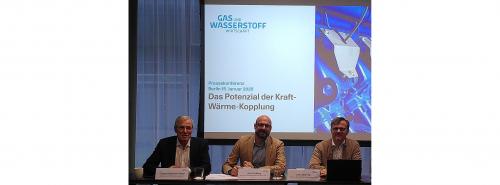 V.li.: Claus-Heinrich Stahl (BKWK), Jens Kühne (AGFW) und John Werner (Gas- und Wasserstoffwirtschaft) bei der Studienvorstellung Quelle: E&M / Susanne Harmsen |
