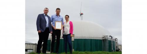 Im Bioenergiepark Saerbeck: (v.l.) Hermann Josef Benning (Fachverband Biogas), Biogasanlagen-Betreiber Hendrik Uhlenbrock (Saergas) und Isabelle Grudda (LEE NRW) Quelle: E&M / Volker Stephan |