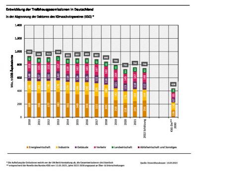 | Die Entwicklung des Treibhausgasausstoßes im Jahr 2022 nach Sektoren Zur Vollansicht bitte auf die Grafik klicken Quelle: UBA |