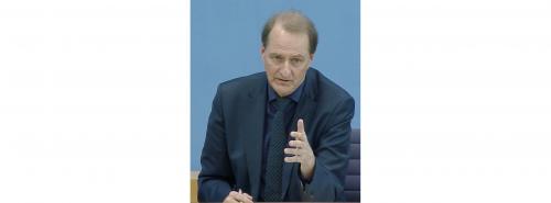 | UBA-Präsident Dirk Messner bei der Treibhausgasprognose für 2022 Quelle: BPK |