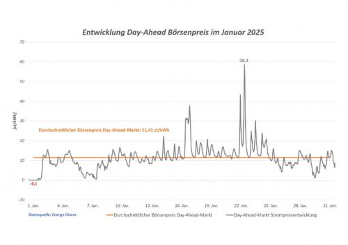 Im Schnitt sind die Ergebnisse der Day-ahead-Stundenauktion im Januar 2025 mit 11,41