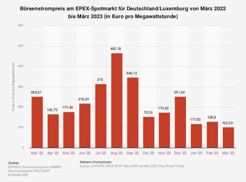 Euro pro MWh und lag damit deutlich tiefer als ein Jahr zuvor. Grund für die dramatischen Preissteigerungen 2022 war der akute Erdgasmangel auf Grund des russischen Angriffskrieges.