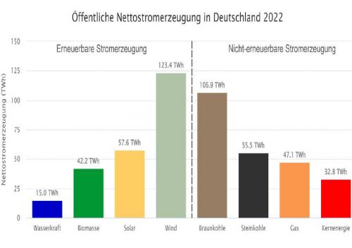 Öffentliche Nettostromerzeugung in Deutschland 2022 - Zum Vergrößern bitte auf das Bild klicken Quelle: Fraunhofer ISE |