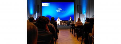 EU-Wettbewerbskommissarin Margrethe Vestager und Bundeswirtschaftsminister Robert Habeck beim dritten Gespräch zur Transformation Quelle: E&M / Susanne Harmsen |