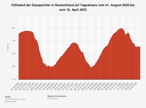 Die Deutschen Erdgasspeicher sind nach Zahlen von Gasinfrastruktur Europe aktuell zu rund 64 Prozent gefüllt. Ein Rekord für diese Jahreszeit. Der hohe Wert ist auf die relativ milde Witterung und Einsparbemühungen zurückzuführen.