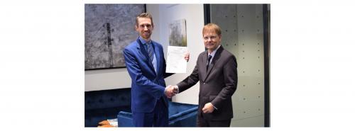 Ines-Chef Sebastian Bleschke übergab die Beitrittspapiere an BEE-Geschäftsführer Wolfram Axthelm Quelle: Ines |