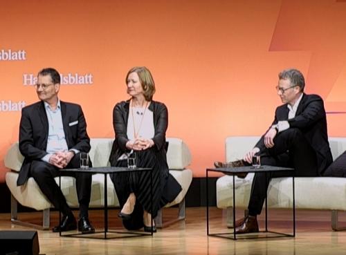 Auf dem Handelsblatt-Energiegipfel (von links): Adrian Willig (En2x), Kerstin Andreae (BDEW) und Andreas Gehlhaar (Deutsche Bahn) bei der Diskussion auf dem Energiegipfel 2023 Quelle: Handelsblatt |