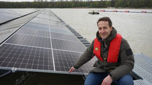 Damit hat es sich aber auch schon mit den genaueren Angaben. Der Rest ist Betriebsgeheimnis beim Familienunternehmen, das seinen Stammsitz im rheinischen Frechen hat. Wochenends ruht der Abbau von Quarzsand aus den Baggerseen zumeist, dann speist die Floating-PV-Anlage ins öffentliche Netz ein. Wie viel der 2,7 Millionen kWh, das bleibt im Ungenauen. Immerhin 225 Standardhaushalte profitierten bilanziell vom Überschussstrom, so Duric.