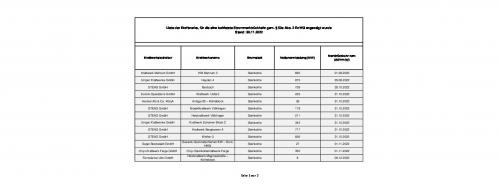 Auf der Liste, die von der Bundesnetzagentur veröffentlicht worden ist, finden sich derzeit insgesamt 14