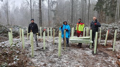 Den Spaten in den kalten Waldboden rammten kürzlich die Beschäftigten des Saarbrückeners Energieversorgers „Energie SaarLorLux“ und des Saarforstes. In einem Waldgebiet nahe Elversberg, nördlich von Saarbrücken, pflanzten sie über 500
