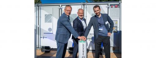 Stefan Thiel (Solares AG), Peter Braun und Max Kory (beide Phenogy AG) bei der Inbetriebnahme der Natrium-Ionen-Batterie in Bremen Quelle: Phenogy AG |