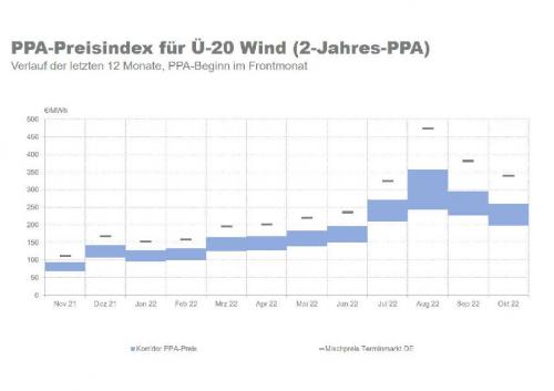 Jahre alten, aus der Förderung gefallenen Onshore-Windanlagen (Ü20) eine erzielbare Bandbreite für einen Zwei-Jahres-Vertrag mit Lieferbeginn November 2022 zwischen 198