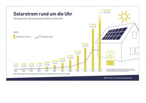 Bei den solaren Heimspeichern beträgt der Zubau 2024 laut BSW 580.000
