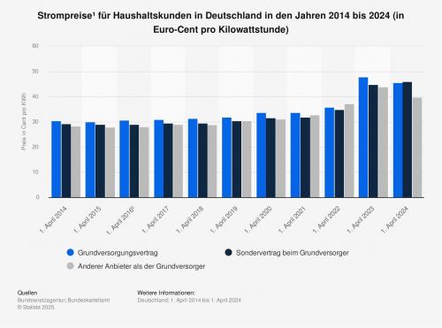 Zum 1. April 2024 zahlten Haushaltskunden in Deutschland im Grundversorgungstarif durchschnittlich 45,62