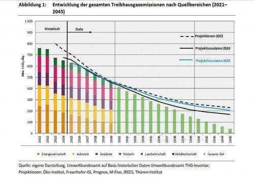 Millionen Tonnen. Das erklärte das Umweltbundesamt (UBA) am 14. März 2025. Laut den aktuellen Projektionen könne Deutschland demnach mit den bestehenden Maßnahmen das nationale Klimaziel fast erreichen, sofern diese konsequent umgesetzt werden. Bis 2030 sollen gegenüber 1990 als Vergleichsjahr 65