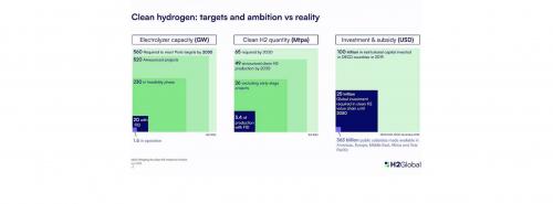 Stand des Wasserstoffhochlaufs zwischen Ambition und Umsetzung (zum Vergrößern bitte auf die Grafik klicken) Quelle: H2Global |