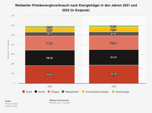 Exajoule Erdöl verbraucht, so das Londoner Energy Institute. Gegenüber dem Jahr 2021 hat die Verbrauchsmenge demnach um rund 6