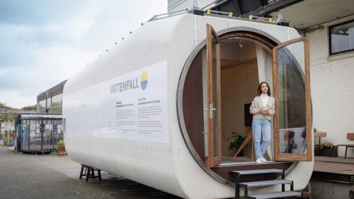 20 Jahre lang wurde in dieser Gondel einer Windkraftanlage Strom produziert. Nun ist es ein Tiny House. Der schwedische Energiekonzern Vattenfall präsentiert auf der in Eindhoven stattfindenden „Dutch Design Week“ ein Tiny House, das aus dem Maschinenhaus einer stillgelegten Windturbine gefertigt wurde. Wo ursprünglich die Technik zur Stromerzeugung untergebracht war, befinden sich nun eine Küche, ein Bad und ein Wohnzimmer. Das Gehäuse mit einer Breite von vier Metern, einer Länge von zehn Metern und einer Höhe von drei Metern stammt von einer Windturbine, die in Österreich installiert war.