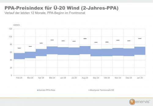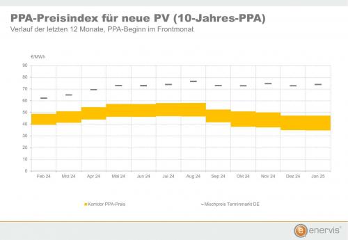 Der dazu korrespondierende Terminmarkt-Mischpreis im Januar für die betreffende PPA-Laufzeit ist auf circa 74