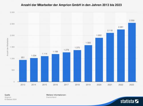 Im Jahr 2023 waren insgesamt 2.550 Personen beim Übertragungsnetzbetreiber Amprion GmbH mit Sitz in Dortmund angestellt. Im Jahr zuvor hatte sich die Mitarbeiterzahl noch auf 2.261 Personen belaufen. Das Unternehmen betreibt das mit knapp 11.000 Kilometern Länge zweitgrößte Höchstspannungs-Stromnetz (220 kV und 380 kV) in Deutschland. Es erstreckt sich über sieben westdeutsche Bundesländer.